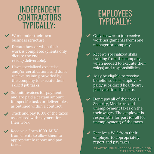 So what’s the difference between an employee and an independent contractor? In the most basic description, here’s a chart to show you the difference:
